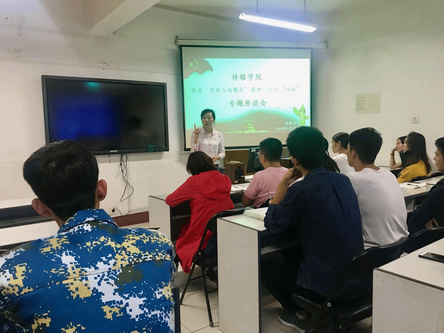 9月21日,为了贯彻落实省委,校纪委《关于对我校监督中央八项规定精神落实、纠正“四风”工作开展调研的通知》的会议精神及相关要求,我院在B-406召开了关于落实八项规定、纠正“四风”专题座谈会,我院各班纪检委员及部分普通学生参加了此次座谈会,会议由我院纪检委员杨谨瑜老师主持。