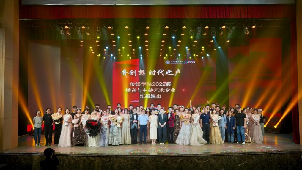 启动仪式后,2022级播音与主持艺术专业汇报演出精彩登场。情景朗诵《血色城防图》以1948年太原解放为背景,再现革命先烈的忠诚与信仰;朗诵节目《课本里的山西》通过文学经典与现实图景的呼应,展现三晋大地的千年风华;小品《互联网体检》以幽默形式反思数字时代对人们工作生活的深刻影响。当晚,斗拱爷爷王永先的登场将晚会推向高潮。王永先老先生向现场观众讲述了他的古建保护与传播经历,并寄希望学子关心关注中国传统文化,传承使命、讲好中国故事。晚会在配音、歌舞等精彩节目中高潮迭起,现场氛围热烈。