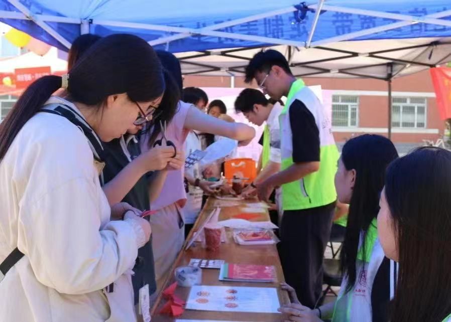 在“三晋探微·知行并进”知识挑战区,学生们通过答题、配音、书写诗句等环节,探索山西文化底蕴;“晋地密码·青春解码”民俗体验区则设置了镂花模印、剪纸的山西特色非遗手作体验,以及山西文化拼图连线互动项目,让传统技艺焕发新生机;“晋在笔端·青春共鉴”艺术鉴赏环节,学生通过摄影作品和影视片段解读,展现对山西文化遗产的观察与思考。活动参与者还可通过九宫格打卡明信片集章参与抽奖,获得山西特色文创奖品。