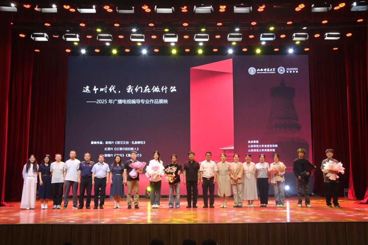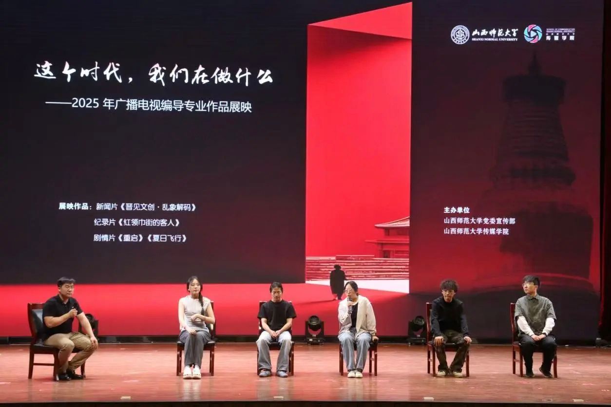首先进行的“2025年广播电视编导专业作品展映活动”由广播电视编导系主任张明超老师主持。活动以“这个时代,我们在做什么”为主题,精选2022级广播电视编导专业《晋见文创 乱象解码》、《红领巾街的客人》、《夏日飞行》、《重启》四部优秀学生作品进行了放映。这些作品聚焦文化产品市场经营乱象、迁徙家庭平凡故事、留守儿童兄弟情义,神话世界未来想象,涵盖新闻专题片、纪录片、儿童题材剧情片和科幻短片等多种类型。展映后,各主创团队就创作构思、实践挑战与收获等话题,与现场观众进行了互动交流。