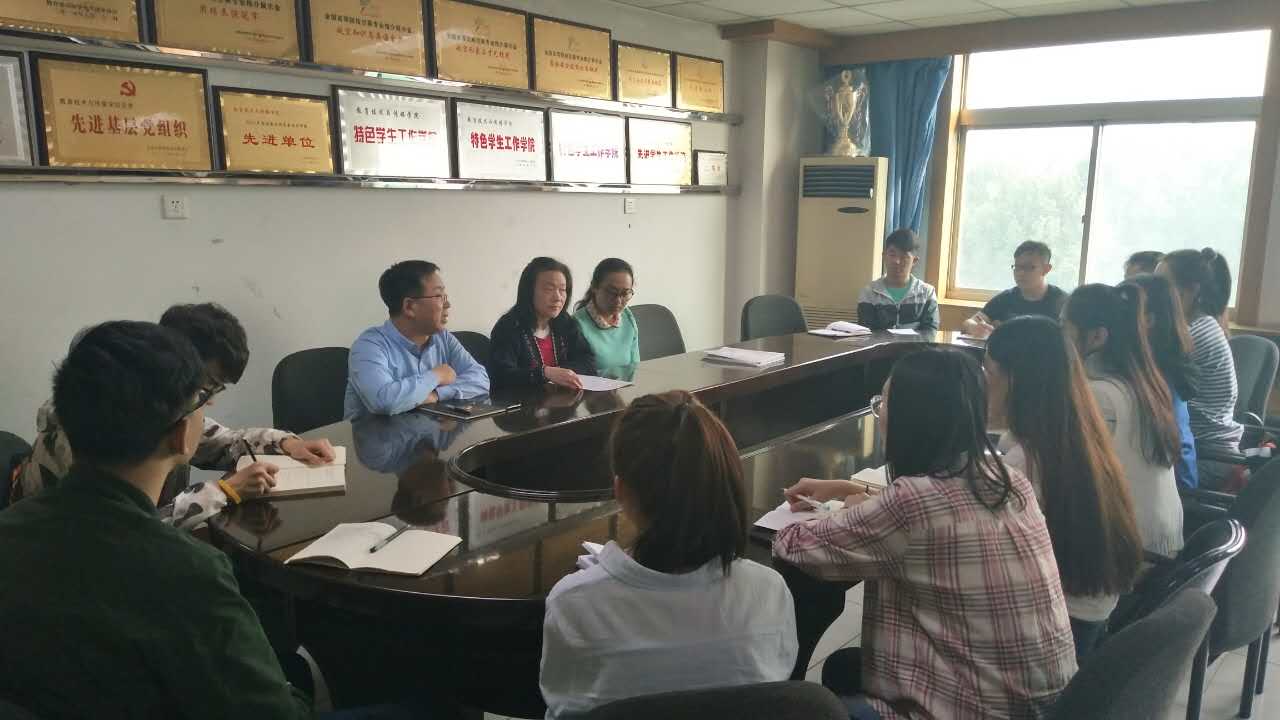 4月25日下午,传媒学生党支部在科学会堂B503会议室召开全体党员会议,对支部委员进行了调整。院党委书记邵晓慧、党委副书记王银、支部宣传委员郭雨欣老师参加了会议。会议由院党委书记邵晓慧同志主持。