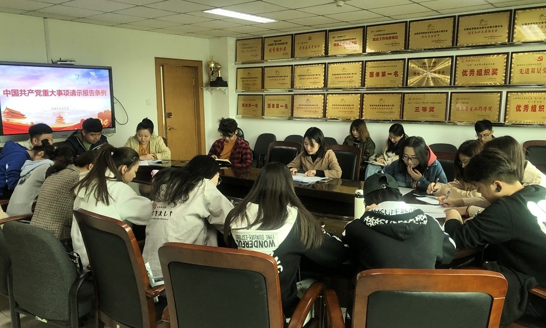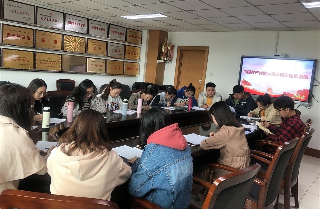 3月29日上午,我院传媒学生党支部在科学会堂B-503召开学习会,专题学习了《中国共产党重大事项请示报告条例》。支部全体成员参加了学习,组织委员文婷主持学习。