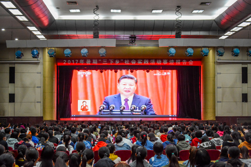 按照校党委统一部署安排,全校各二级党组织采取多种形式,组织广大党员和师生员工收看十九大开幕会直播。学校还组织学生代表在文化艺术活动中心集中观看开幕会盛况,认真学习领会十九大报告精神。通过观看,师生们倍受鼓舞,纷纷表示要以党的十九大召开为契机,振奋精神,把握机遇,以坚定的信念、务实的态度,不断提高自身的素质能力,为把我校建设成为特色鲜明的高水平师范大学而共同努力!(白晶/文 饶二保 郑远飞等/摄)