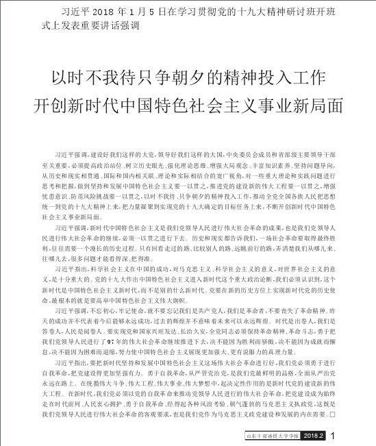 习近平2018年1月5日在学习贯彻党的十九大精神研讨班开班式上发表重要讲话强调以时不我待只争朝夕的精神投入工作开创新时代中国特色社会主义事业新局面
