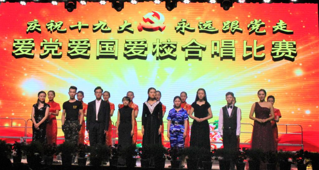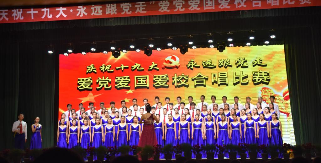 11月1日晚7点,我校“庆祝十九大,永远跟党走”,爱党爱国爱校大合唱决赛在大礼堂隆重举行。届时,大礼堂内灯光璀璨、座无虚席。校领导卫建国、高峰、郝勇东、王云、王建华、车文明出席了本次活动,各位党代表以及近千余名师生共同观看了此次比赛。
