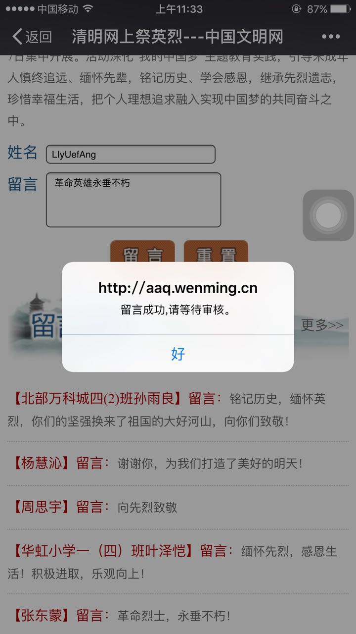 “清明时节,是缅怀先人、悼念逝者、寄托哀思的日子,我们不能忘记,那些为着国家和人民英勇牺牲的英烈们。唯有铭记,才能感悟英雄身上的力量;唯有守护,才能守望民族的希望和未来。”这段文字写在线上活动的前页,每位积极参加活动同学第一眼看到的都是这段发人深省的文字。