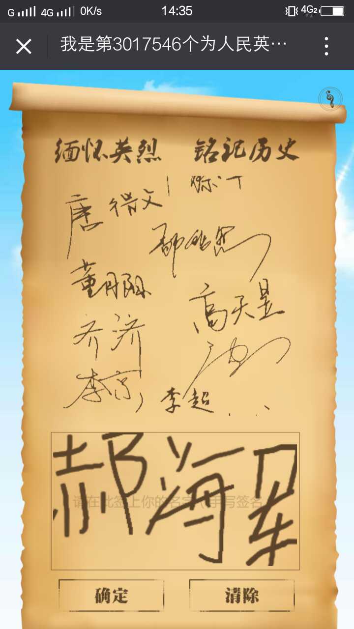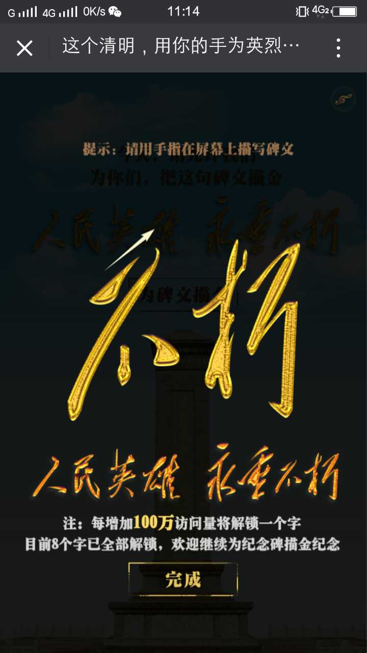 通过这一线上活动,人民英雄纪念碑底座上那一件件革命先烈们英勇奋斗的事迹重新走入大家的视野,随着一张张图片的展示,大家心中对革命英烈的景仰之情油然而生。带着这股子敬意,我们以虔诚之心用手指触摸屏幕为英烈的碑文进行描金及签名。