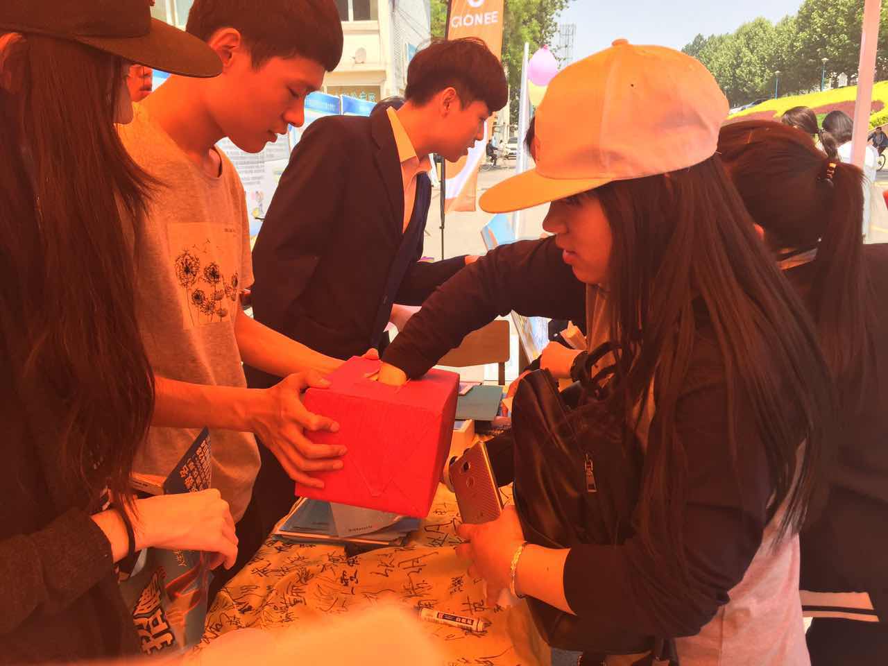 此次活动由共青团中央学校部、新浪微博、校团委新媒体中心联合组织,面向全校师生开展,活动开始,同学们纷纷驻足围观,通过微博绿植领养助力、扫取二维码的方式,工作人员为同学们发放了种子、花盆,同时也为抽奖获奖的幸运儿发放精美的小礼品。烈日炎炎下,现场的气氛依旧不减,满满的签名和爱心寄语,寄托了同学们对于环保意识的渴望:环保当下,从自身做起。