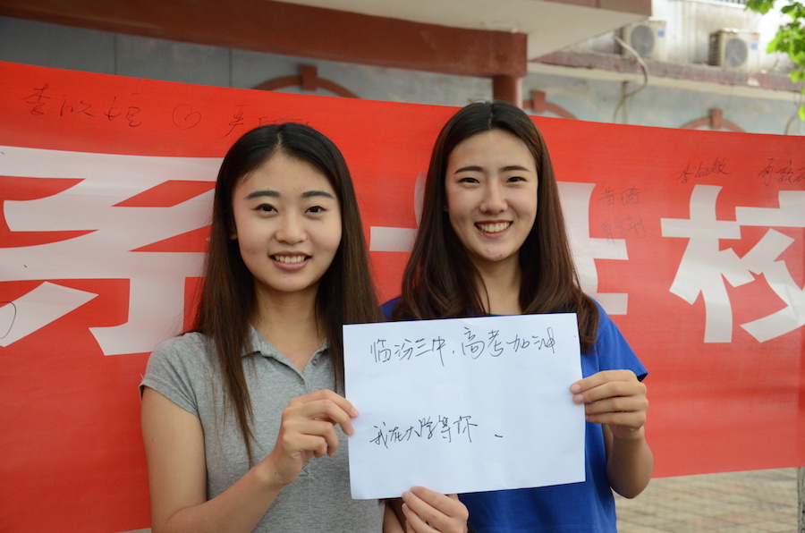 活动一开始,便吸引了很多路过的同学加入到我们“助力高考”活动的行列中。同学们通过写助力宣言、在镜头前说出自己想说的话,以及条幅签名的方式来表达对母校的祝愿。据工作人员介绍,活动结束后,将把照片和拍摄视频做成一个宣传片推送至微信公众号、微博、以及上传至各大网络平台,为即将高考的学子鼓励加油。