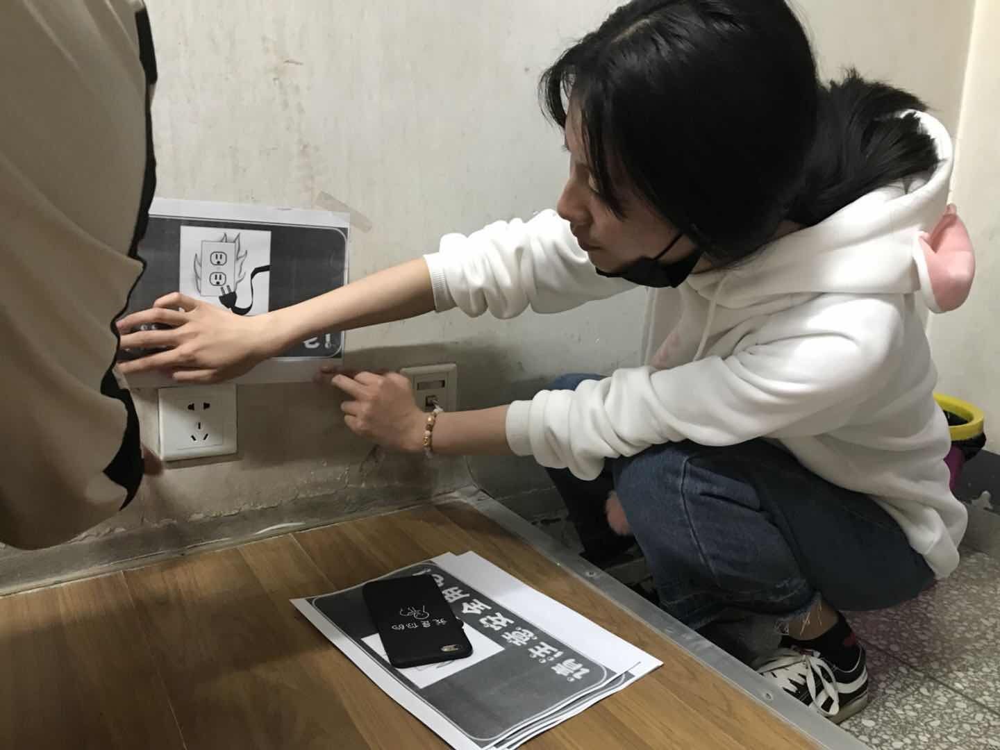 活动开始前,全体成员在科学会堂前集合,大家列队抵达莳英园。活动负责人将大家按小组划分,为各小组下发了安全标识、剪刀和胶带。团委学生会成员在10、11、12号教学楼的每个教室内,在电源旁张贴安全用电标识的活动,以达到警示的作用。同学们表示,用电无小事,安全很重要,希望可以通过此次张贴标识起到安全用电警示作用。
