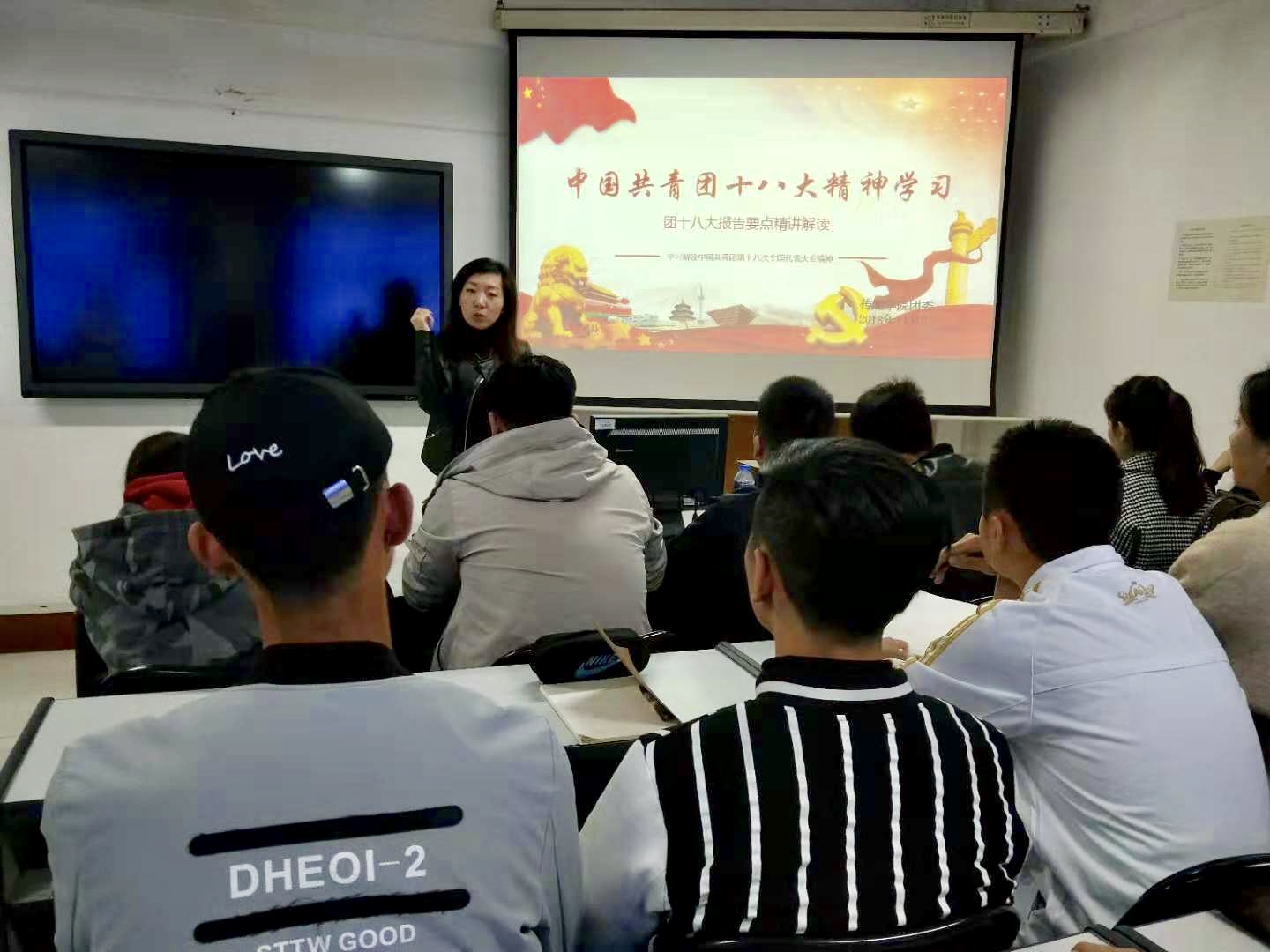 会上,我院团委书记杨谨瑜老师带领大家学习了中国共青团十八大精神内容,通过学习,同学们意识到了我们应高举习近平新时代中国特色社会主义思想伟大旗帜,全面贯彻党的十九大精神,不忘跟党初心,牢记青春使命,奋发务实进取,勇于自我革命,团结带领广大团员青年为决胜全面建成小康社会、全面建设社会主义现代化国家、实现中华民族伟大复兴的中国梦努力奋斗。会后,杨谨瑜老师组织同学们撰写学习心得。