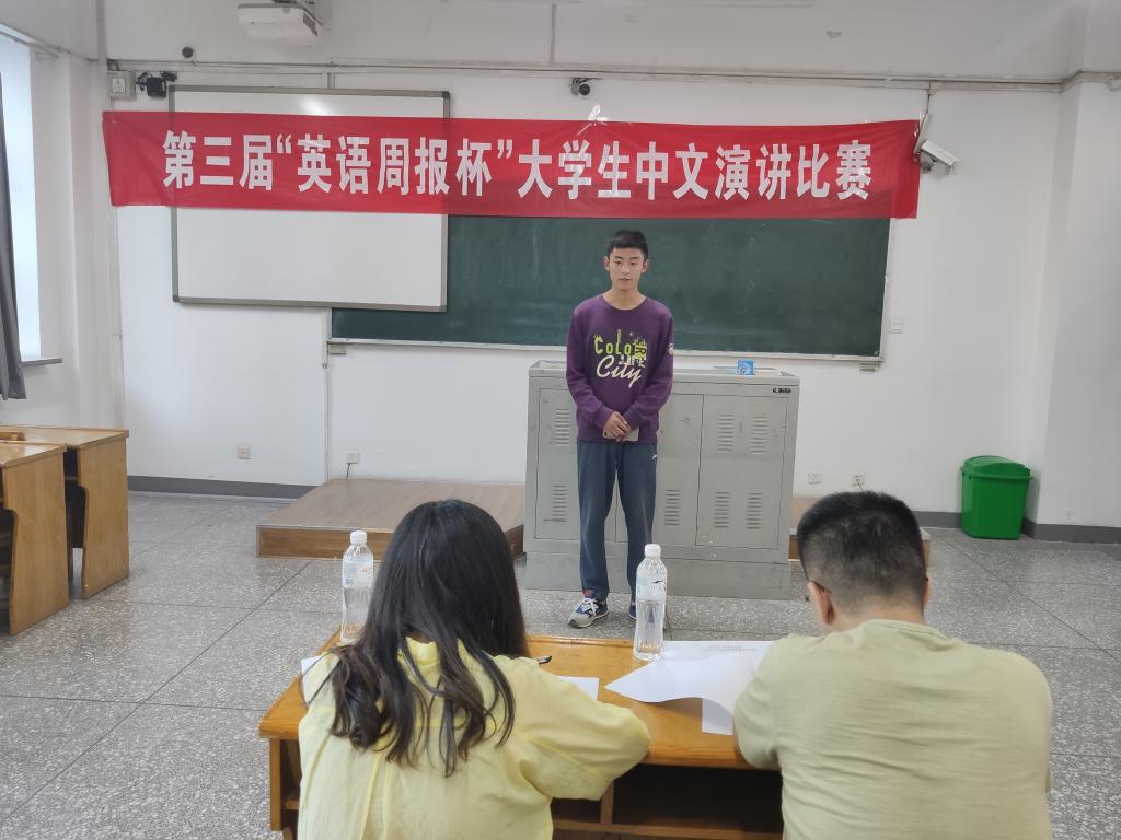 为庆祝中华人民共和国成立70周年,纪念五四运动100周年,引领青年提高内在素质,锤炼过硬本领,担负时代使命,提升学生演讲能力与表达能力,活跃校园文化氛围。9月21日下午,我院举办了第三届“英语周报杯”中文演讲比赛初赛。大赛邀请了郭梁、赵军、刘竞阳、康宁、闫容、杜姣多位老师担任评委。