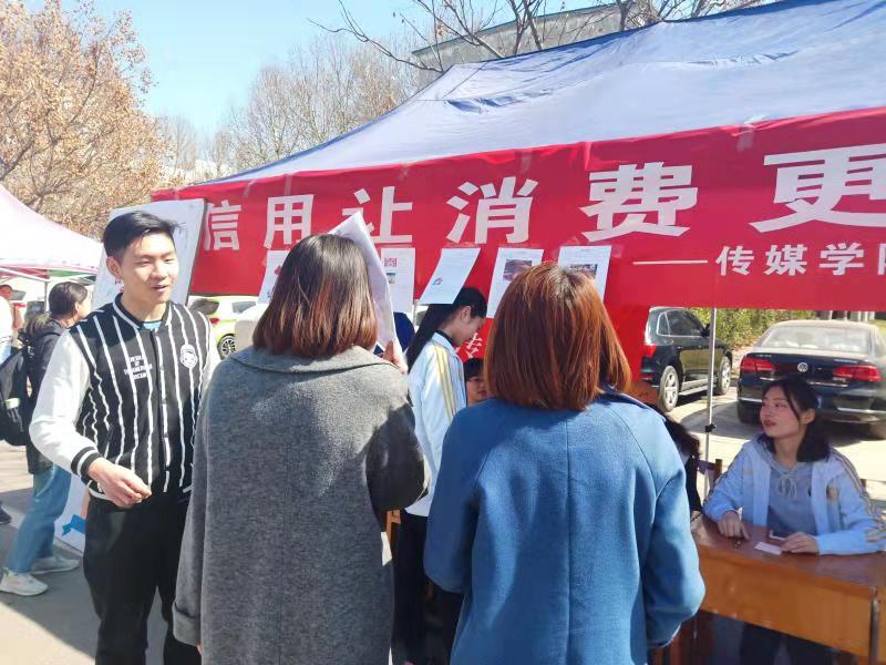 在3·15国际消费者权益日来临之际,为增强大学生消费维权意识,树立正确的消费观念,引导大学生正确、安全、健康消费。3月15日中午,我院团委学生会在校医院门口举行“信用让消费更放心”主题活动。