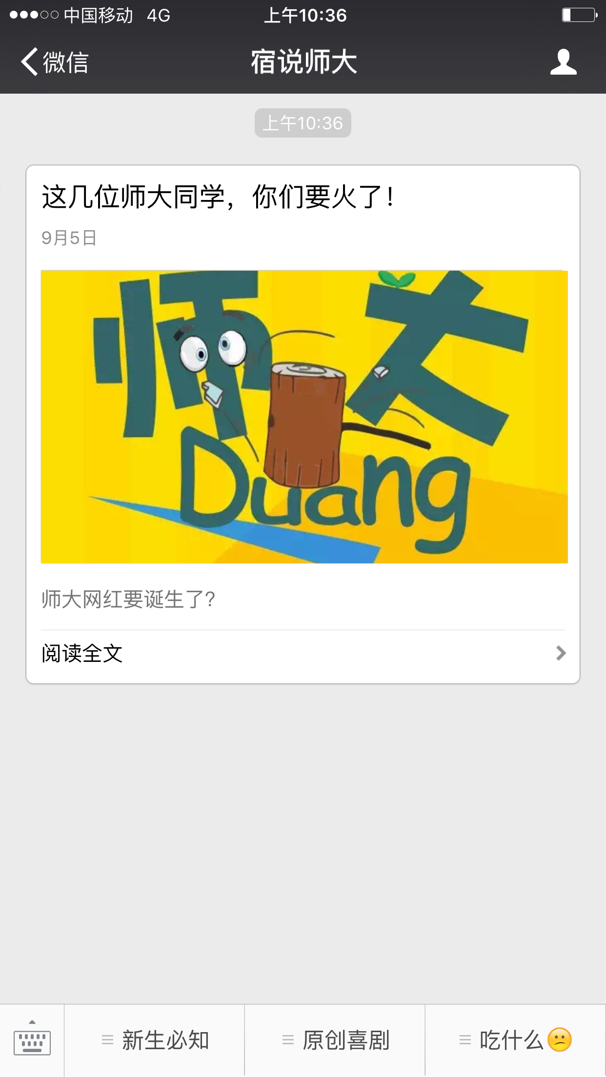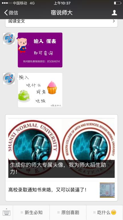 我院播音与主持艺术本科专业14级学生曹瑞同学运营的手机自媒体“宿说师大”微信公众号,通过自学微信公众号运营将自身专业结合起来为师大师生服务,目前已经成为必发集团7790颇有影响力的一个自媒体。