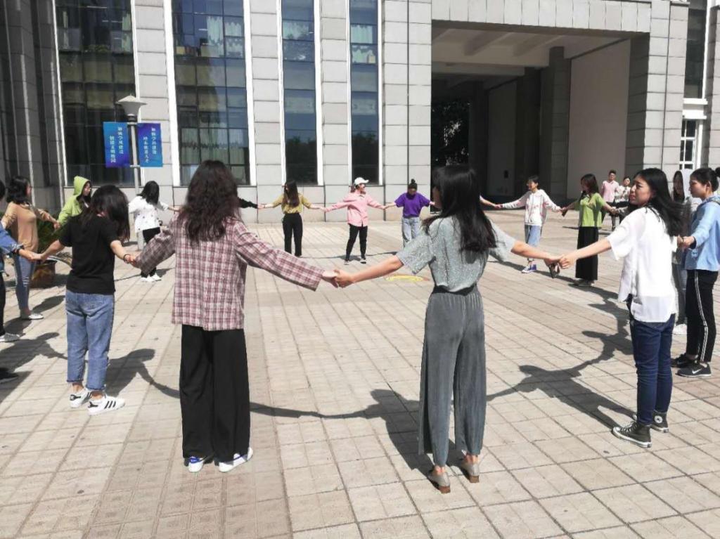 全班同学分为十人一组,手拉手围成圈,并记住左右两边的同学,松手后任意走动、站定,再次牵到原来两边同学的手,此时,团队成为一团乱麻,在不松手的情况下,把乱麻解开。这是一个寓意丰富的游戏,蕴藏着很多人生哲理,通过团体小组的情感分享,使成员体验到当人生中遇到困扰时,只要善于用心,一定可以解脱。