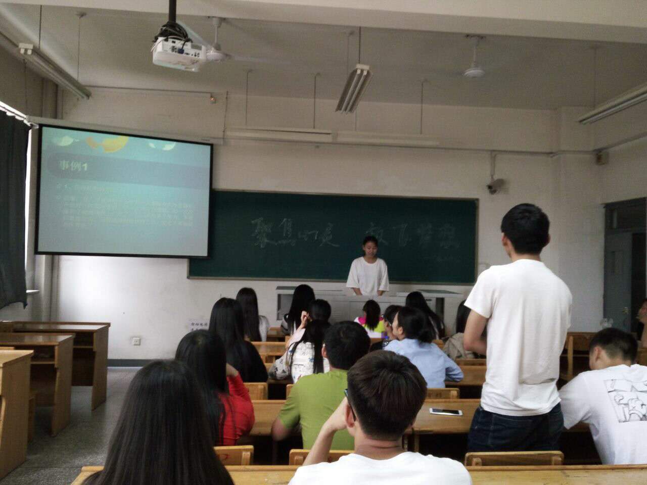 班会伊始,心理委员王妮娜同学通过问卷调查了解到我班学生的心理状态并进行简要介绍。接着,心理委员通过放映PPT的形式,列举出近年来我国大学生由于心理问题而引发的种种事件,例如四川师范大学杀人案、复旦大学投毒事件等等,令人触目惊心。借此,也让同学们了解到心理问题的严重性。