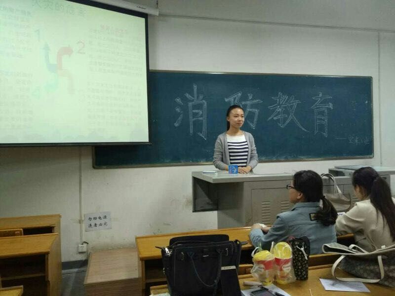 活动开始,宣传委员通过PPT的形式,结合大量的文字素材向大家介绍了火灾的危害,并列出近年来各大高校频发的校园火灾事件。一张张触目惊心的图片让同学们深受震撼,感受到了火灾的危害性。随后,从遭遇火灾时的逃生办法,及消防器材的使用这两方面来进行学习。同学们积极的讨论,并交流了自己对消防安全的看法和认识,使同学们进一步加深了对消防安全知识的了解。