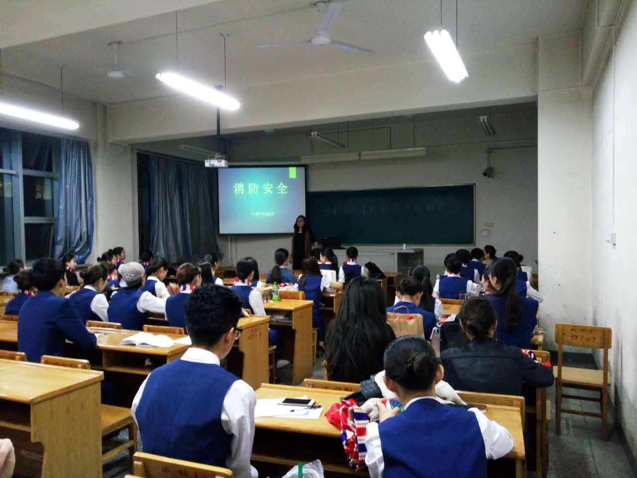 2016年4月26日晚,空乘1404班开展了“消防安全”主题班会,班会由辅导员黄云芳老师主持,班级同学全员参与。