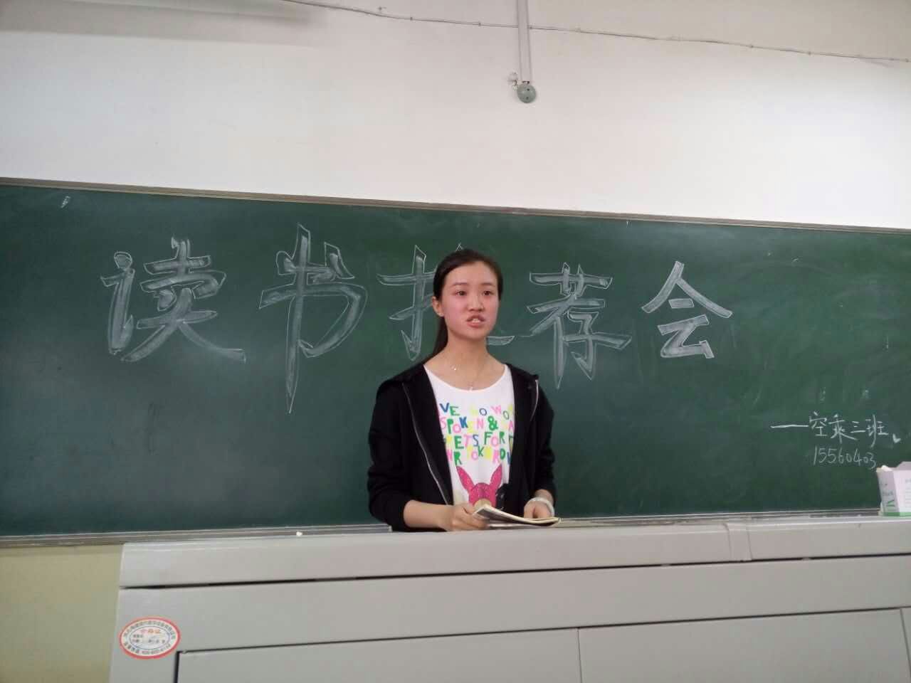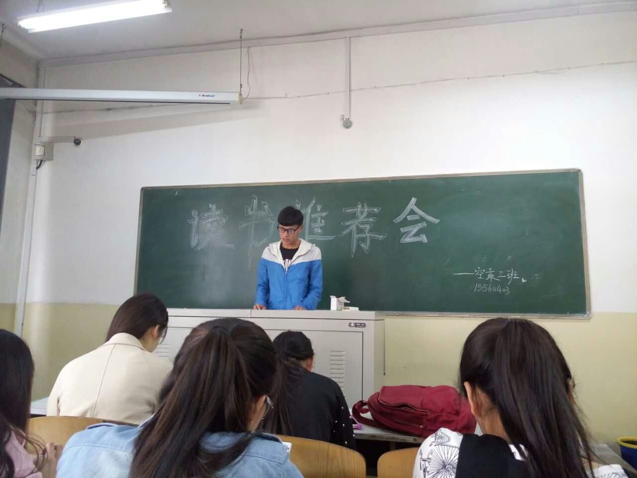 为响应学院读书月系列活动的号召,空乘1503班积极开展阅读经典活动,并于2016年4月22日上午10时在01318教室开展了第二次班级图书推荐会。