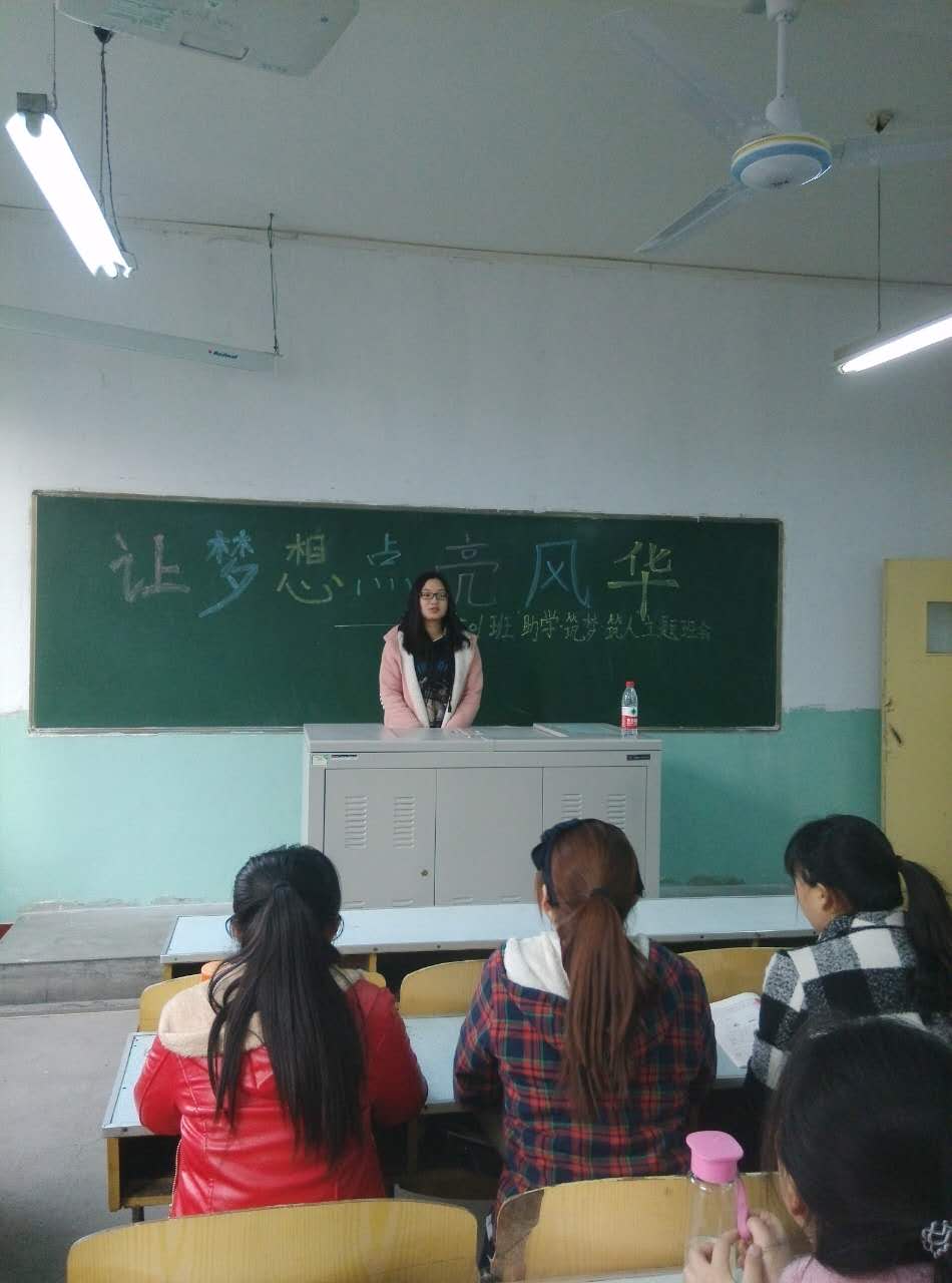 2016年3月5日,按照院学工组的安排,教育技术1501班辅导员及全体学生在04213教室开展了“让梦想点亮风华”主题班会,此次班会主题宣讲人为大四教育技术专业保研学生宋佳。