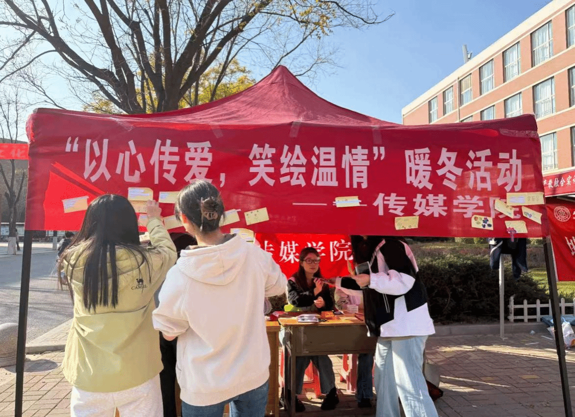 为传递同学间的友爱与温暖,捕捉冬日里的“暖阳”,营造温馨的校园环境。11月4日下午,我院于南区4、5号楼中间举办“以心传爱,笑绘温情”暖冬帐篷活动,同学们积极参与。