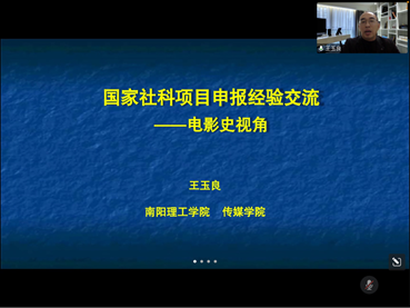 2022年11月25日19时,南阳理工学院王玉良副教授应邀为我院师生作“国家级项目申报经验分享—电影史视角”为主题的线上学术报告。本次报告由必发集团welcome欢迎光临副院长周婧主持,必发集团welcome欢迎光临部分教师及学生聆听了此次讲座。