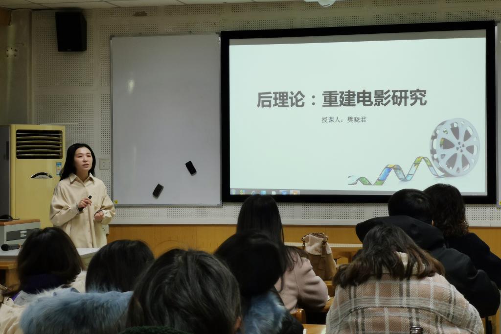 最后,樊晓君老师对《后理论:重建电影研究》这本书的基本观点与结构体系进行了讲解,并推荐了众多的理论书籍,如达德利·安德鲁的《电影理论概论》、黄琳的《西方电影理论及流派概论》和陈晓云主编的《电影理论基础》等。此后,樊晓君老师与各位教师和同学展开热烈讨论,并针对部分教师及学生所提出的问题做出了详尽的回答,到场师生均表示获益匪浅。