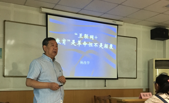 会后,杨教授以专业的视角、幽默诙谐的语言和学生老师们进行愉快的交流互动,通过列举亲身经历的案例,鼓励和启发与会者学术研究选题应该创新,鼓励大家对“互联网+教育”深入研究,以适应时代发展要求。