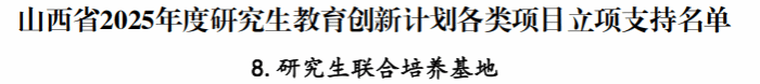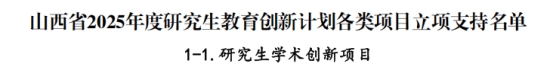 近日,山西省教育厅文件《山西省教育厅关于公布2025年度研究生教育创新计划各类项目的通知》(晋教研[2025]1号)公布了山西省2025年度研究生教育创新计划各类项目,我院获批3项。