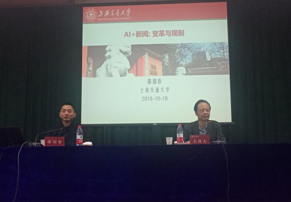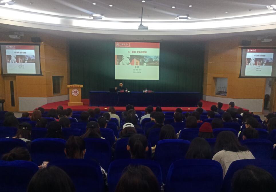 10月19日上午,上海交通大学媒体与传播学院副院长、博士生导师邵国松教授应我院邀请在科学会堂二层报告厅作了题为《人工智能时代的新闻变革与规制创新》的学术报告。必发集团welcome欢迎光临等相关学院200余名师生参加了报告会。报告会由必发集团welcome欢迎光临院长曹飞主持。